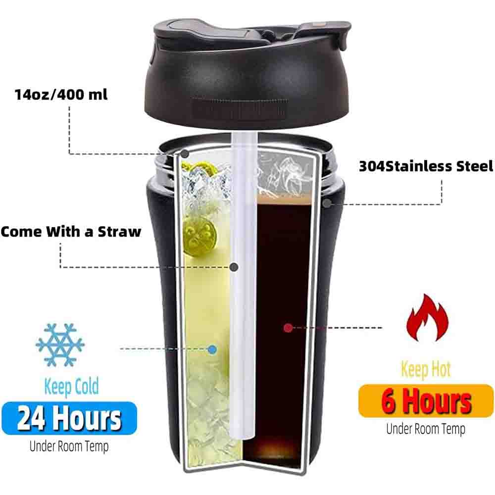 کیفیت ساخت عالی:این ماگ از استیل ضدزنگ ۳۰۴ ساخته شده است که از تغییر طعم نوشیدنیها جلوگیری میکند.دیواره دوجداره آن بهخوبی دمای نوشیدنی شما را حفظ میکند و میتواند نوشیدنیهای گرم را تا ۴ ساعت و نوشیدنیهای سرد را تا ۶ ساعت نگه دارد.